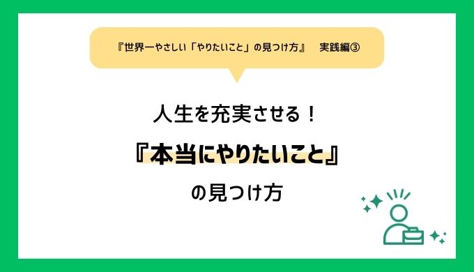 ここでは「世界一やさしい『やりたいこと』の見つけ方」を読んだことのない方や、簡単に概要を知りたいという方に向けて、私の実践例を踏まえながら内容を解説しています。