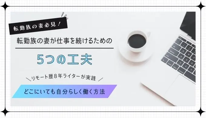 この記事では、転勤族の妻が仕事を続けるために工夫したことや、リモートワークでキャリアをつないできた実例を紹介します。
